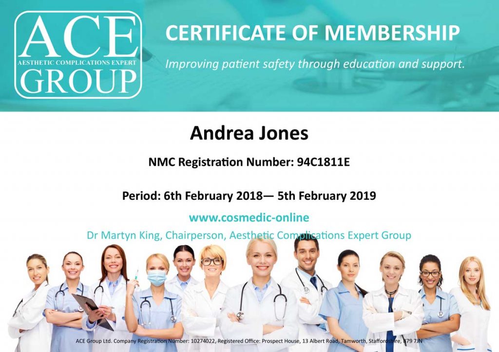 Andrea Jones Cosmetic Clinic is proud to be a certified member and Registered Practitioner with the Aesthetic Complications Expert (ACE) Group. Membership is only available to doctors, dentists, nurses and prescribing pharmacists who have current registration with their professional body. You can find Andrea Jones Cosmetic Clinic listed on the ACE Group website under the …